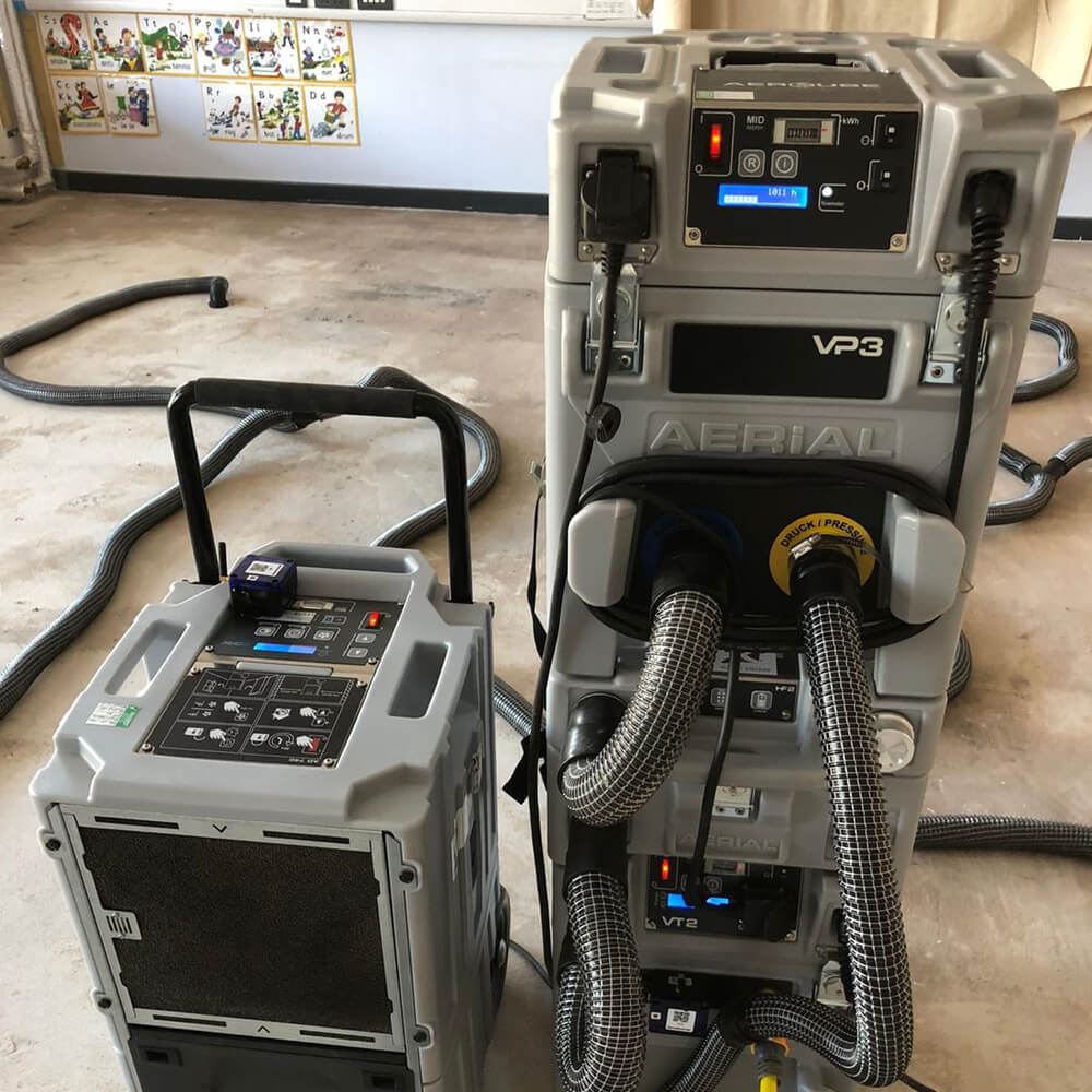 AERCUBE sustavi se koriste za direktno isušivanje vlage iz podova i zidova. Centralni AERCUBE sustav koristi flex.crijeva koja brzo dubinski izvlače vlagu iz samog materijala.